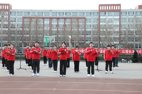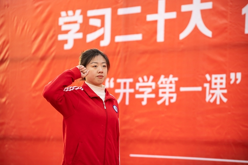 随后,学生代表青春诗诵《读中国》,歌颂我们伟大的中国共产党辉煌的革命历史,表达对祖国深厚真挚地热爱。热血在国旗下沸腾,全体同学以青春宣誓,用青春奋斗践行强国有我的铮铮誓言。通过这堂生动的“第一课”,激励同学们永远爱党爱国,做心怀“国之大者”,以百倍的信心、十足的干劲,勇于拼搏奋斗,不断砥砺前行。