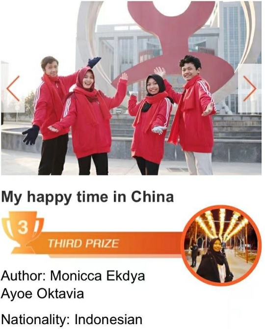 梅婉丽的“我在中国的美好时光”一文生动讲述了她在中国的留学生活,在校就读期间,她参与到了许多文化体验活动,令她对中华民族灿烂文化赞叹不已,“在中国的每一天,我都对生活和未来充满热情,我希望早日实现心中的理想;可是每每想到毕业,我心里又不舍,舍不得这个我已经融入进去的幸福国度”,梅婉丽在文中这样写道。