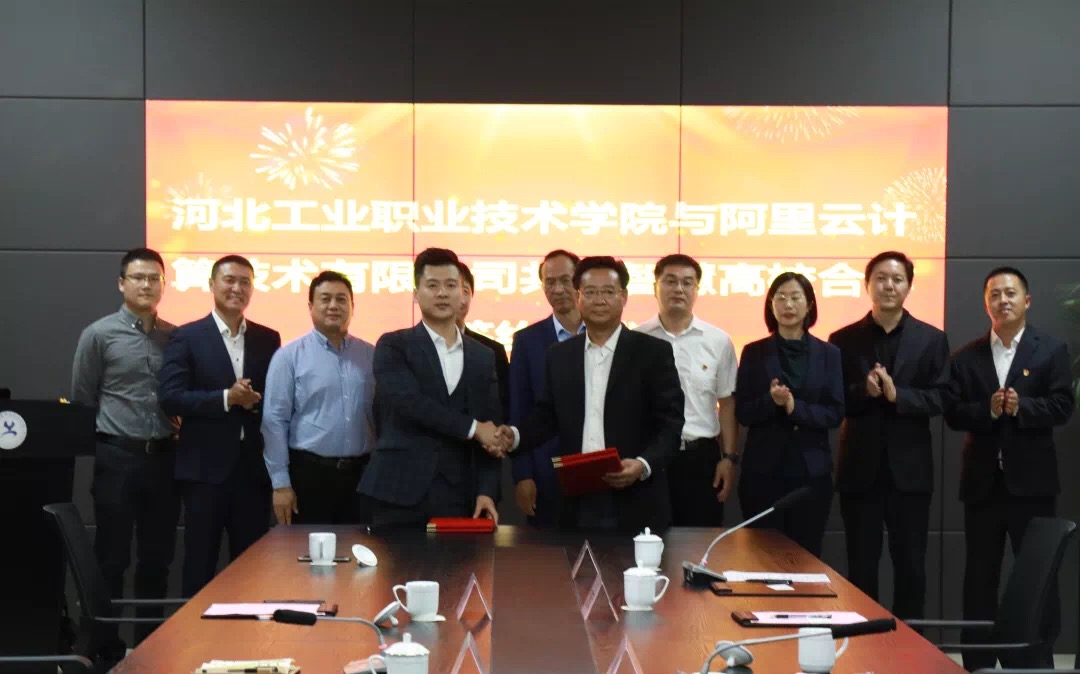 10月10月下午,我院与阿里云计算技术有限公司校企合作签约仪式在图文信息中心七楼会议室举行。学院党委书记王振杰、院长贾俊礼、计算机技术系相关负责人与阿里巴巴集团战略发展大区总经理李瑞华经理、阿里云智能河北分公司总经理李成龙经理等出席了签约仪式。