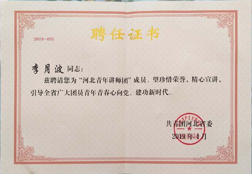 “河北青年讲师团”聘任证书