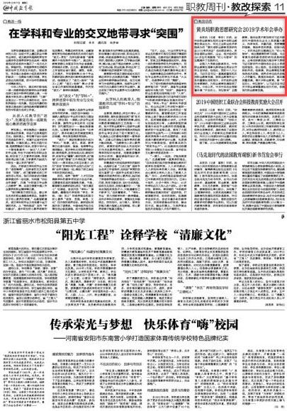 《中国教育报》报道黄炎培职业教育思想研究会2019学术年会在我院举办