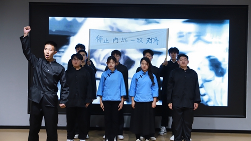 为发扬以爱国主义为核心的一二·九民族精神,激发广大学生的爱国热忱,12月7日,“岁月回响 青春永恒”纪念一二·九运动音诗画展演在“一站式”学生社区中心剧场拉开帷幕。