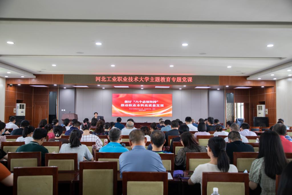 薛晓萍以《做好“六个必须坚持” 推动职业本科高质量发展》为题,结合党的创新理论特别是习近平总书记视察河北重要讲话精神,从深刻认识“六个必须坚持”的核心要义和推动学校职业本科高质量发展两方面进行了讲授。