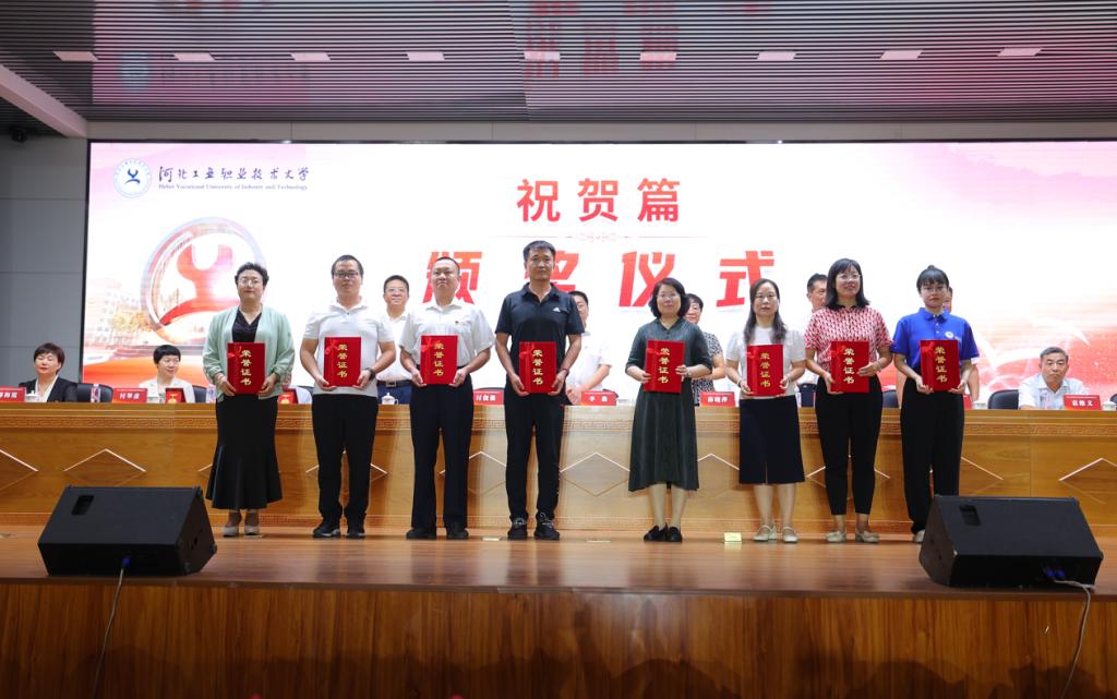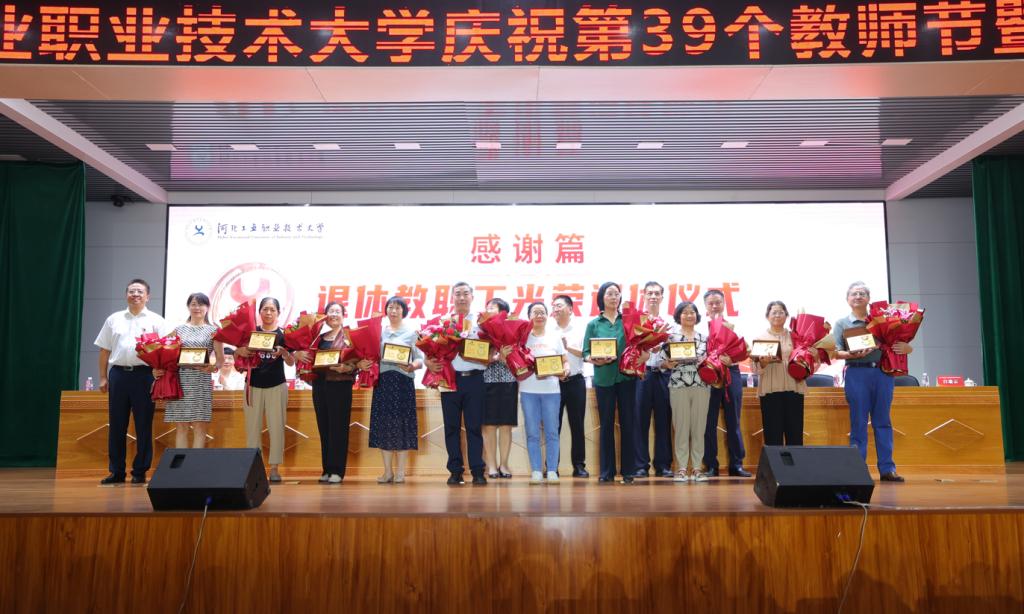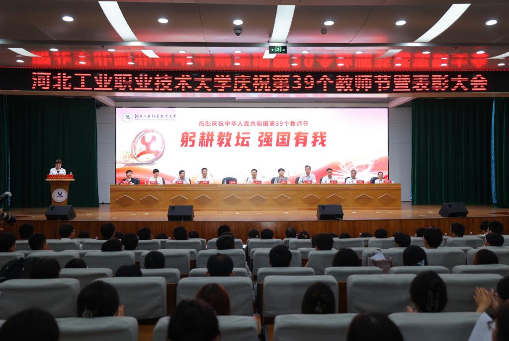 9月8日下午,我校举行庆祝第39个教师节暨表彰大会。大会以“躬耕教坛 强国有我”为主题,举行了退休教师荣休仪式、从教30年以上在职教师纪念仪式和新教师入职宣誓仪式,对在过去一年中获得各类奖励的先进集体和先进个人进行了表彰。2023年河北省师德标兵郝海霞老师、新入职教师代表张艺馨老师分别在会上发言。学校领导班子全体成员出席大会,学校科级以上干部、教师代表、学生代表600余人参加会议。
