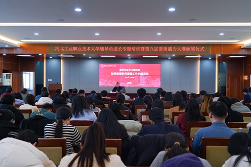 12月26日下午,河北省教育厅德育工作中心主任蔡杭州到我校做“如何做新时代善做工作的辅导员”专题讲座。校党委常委、纪委书记李彦玲出席讲座,学生工作部、各学院党总支书记、副书记、团总支书记及全体辅导员参加学习。
