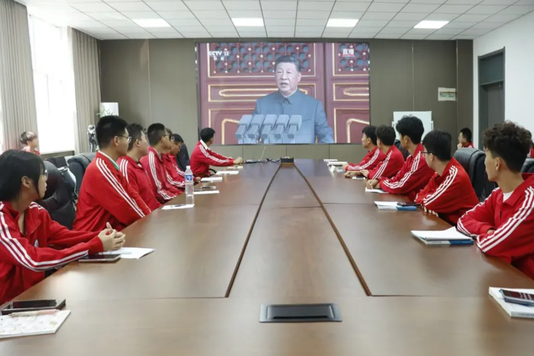 在观看阅兵式过程中,整齐划一的方队、先进精良的武器装备、昂扬奋进的受阅官兵,无不让师生深受震撼、深受鼓舞。雄壮的军乐激昂奏响,整齐的步伐铿锵有力,先进的武器装备熠熠生辉,无不彰显着国家的强盛与军队的威武。广大师生为祖国的强大军事力量和繁荣发展感到无比自豪,集中观看现场不时爆发出热烈的掌声。