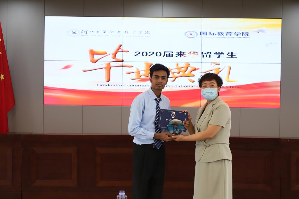 6月23日上午,河北工业职业技术学院2020届来华留学生毕业典礼在行政楼5楼报告厅举行。学院院长薛晓萍、副院长韩提文出席典礼,各留学生培养单位负责人和全体在校留学生参加了本次典礼。本届留学生毕业生全部来自孟加拉国,共计17名。