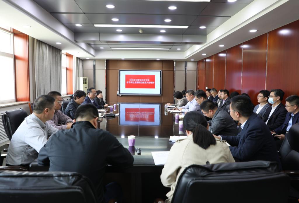 4月14日,KY.COM召开党委扩大会议,党委书记王振杰向各基层党组织书记传达习近平总书记对职业教育工作作出的重要指示和全国职业教育大会精神,并在材料工程系组织召开座谈会,就如何贯彻落实习近平总书记重要指示和全国职业教育大会精神、如何办好本科职业教育进行交流研讨。