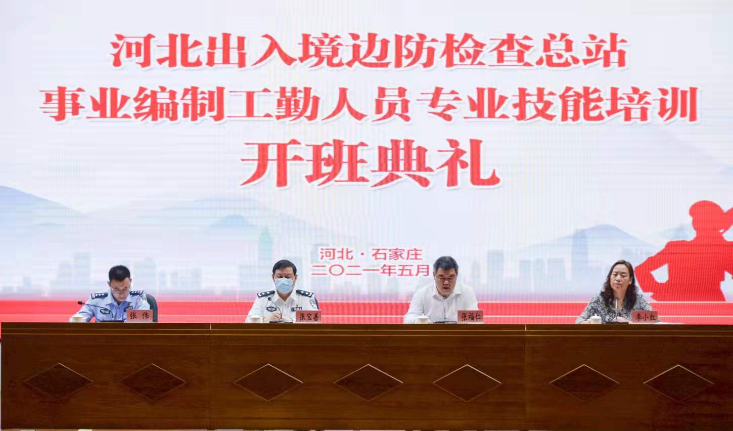 5月14日,河北出入境边检总站事业编工勤人员专业技能培训班开班仪式在KY.COM图文信息中心报告厅举行。我校副校长张福仁、河北出入境边检总站办公室主任张宝善、边检总站办公室副主任张伟、我校成人教育部、智能制造学院和汽车系的负责人出席仪式。