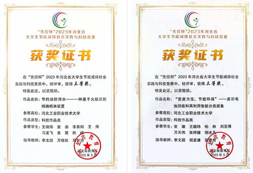 作为教育部落实国家“节能减排全民行动计划”的重要举措,全国大学生节能减排社会实践与科技竞赛以“节能减排、绿色能源”为主题,紧密围绕国家能源与环境政策,紧密对接国家和区域重大发展需求,起点高、规模大、精品多,覆盖面广,是一项具有导向性、示范性和群众性的全国大学生竞赛。本次大赛自开展以来,我校学生积极参与,在指导教师的悉心指导下,同学们认真准备、密切协作,在校赛选拔、平台申报、作品打磨等各个环节中,展现出良好的精神风貌和团队合作能力。并在上半年由河北省教育厅主办的2023年“先控杯”河北省大学生节能减排社会实践与科技竞赛决赛中荣获三等奖两项。