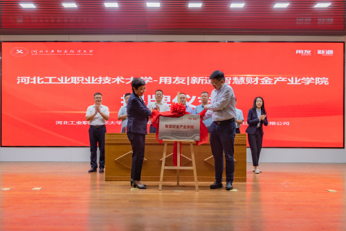 9月14日上午,用友丨新道智慧财金产业学院在我校成立。新道科技股份有限公司副总裁刘曙光、用友网络科技股份有限公司河北分公司总经理赵树根及我校校长薛晓萍、副校长韩提文出席成立仪式。