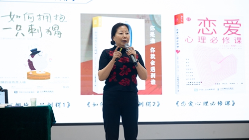 报告中,段教授通过对大学生恋爱观调查报告结果的展示与分析,引出对“大学生恋爱心理”的解读与探讨,并以“认识你自己”、“爱情观评估”、“两性人格特征分析”、“舍弃与自我成就”这四个部分为切入点进行讲解,指出要通过“聆听”的方式深入自我、提升自我,在大学阶段“学习爱、体验爱、感受爱”,培养健康的人格。最后,段教授从认识自我、建立健全的人格;树立共同的目标、由“情投意合”走向“志同道合”;相互尊重、共同成长,在爱情中互相提升、彼此成就三个方面让同学们树立正确的恋爱观。报告结束后,段教授回答了现场学生的提问,就同学们的情感困惑跟大家进行了深入的探讨和交流,并向师生赠送自己出版的《如何拥抱一只刺猬》《恋爱心理必修课》等心理学著作。