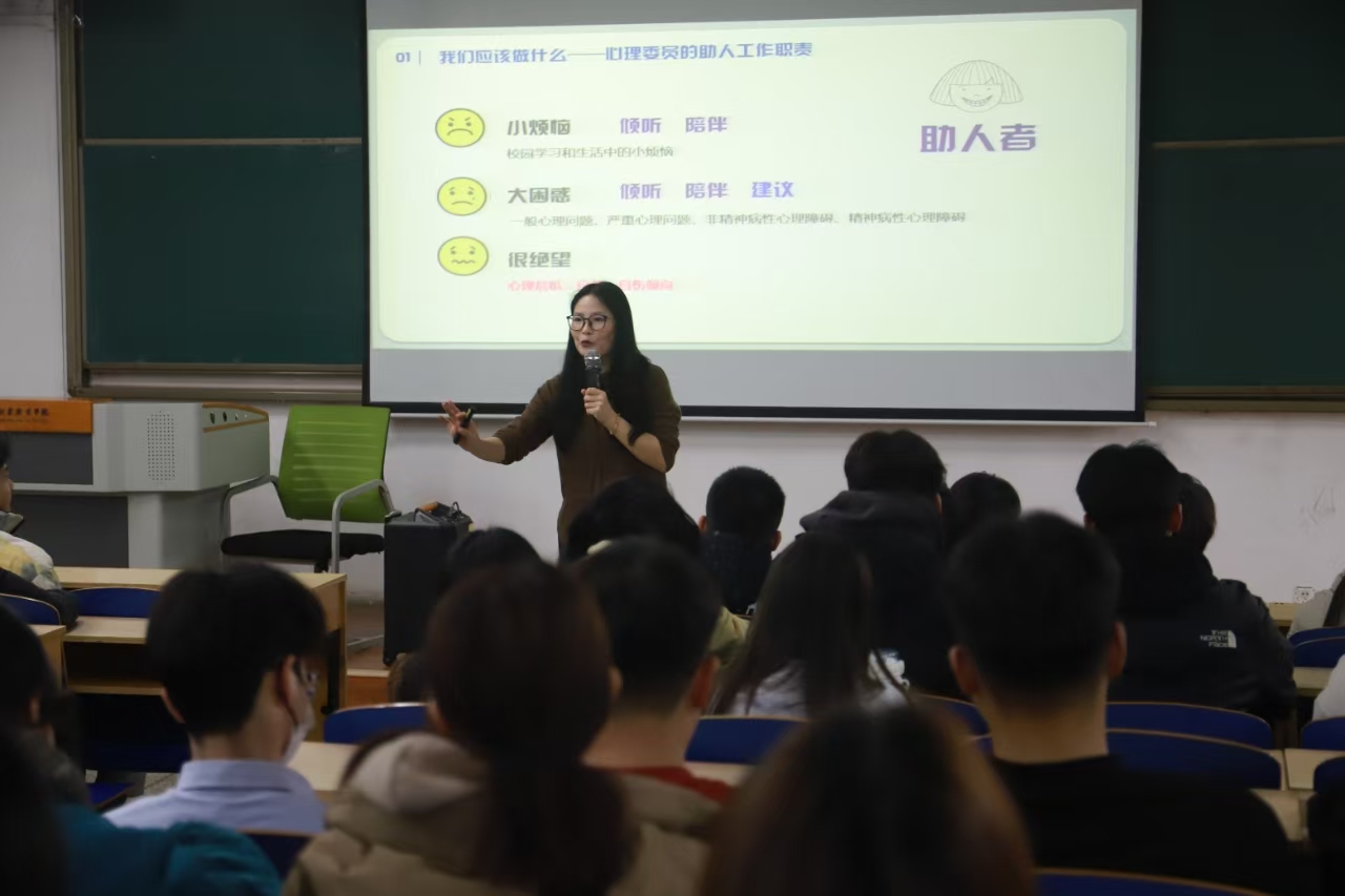 班级心理委员是学校朋辈心理互助队伍不可或缺的一部分,做好隐患排查的“安全信息员”、生活困难同学“帮扶联络员”、情绪异常同学“情绪疏导员”、日常服务师生“志愿服务员”,对于全面加强和改进我校的心理健康教育工作至关重要。