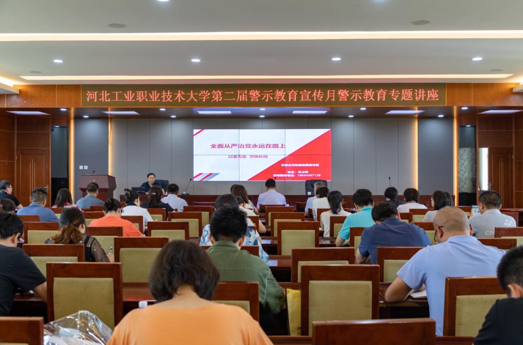 为认真落实党的二十大对全面从严治党的新部署新要求,进一步强化纪律规矩意识,筑牢党员干部廉洁自律的思想防线,根据学校《第二届警示教育宣传月实施方案》安排,6月28日下午,我校邀请石家庄市纪委监委四级调研员、市纪委监委宣讲团成员、市普法讲师团成员毕占领处长做“以案为鉴,警钟长鸣”的专题授课。学校全体中层及以上干部和基层党组织纪检员聆听了讲座。