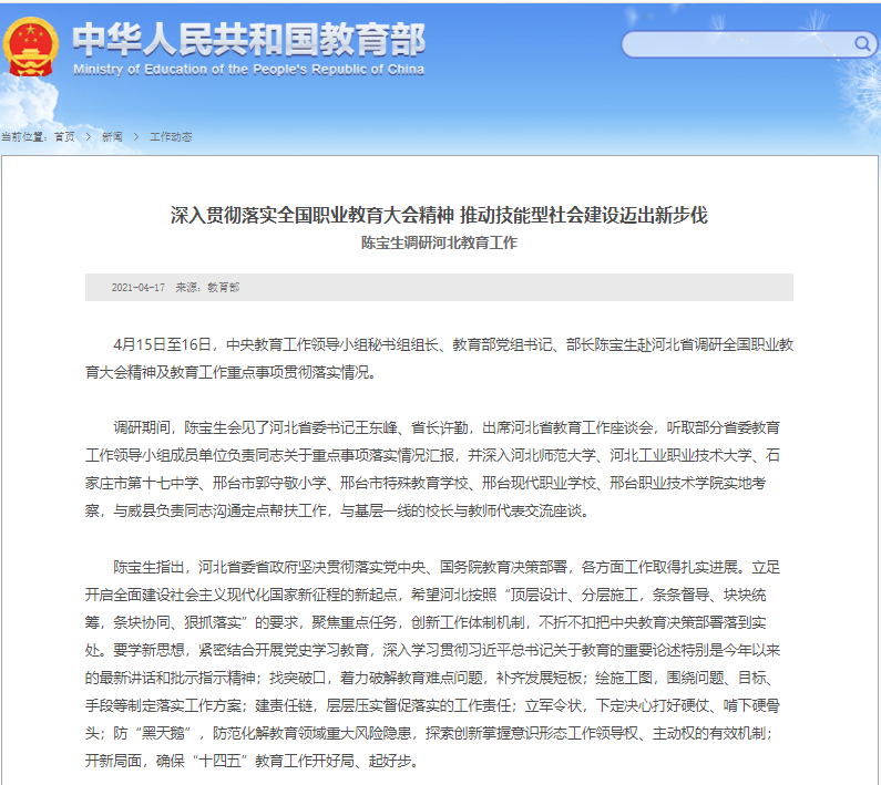 媒体链接:http://www.moe.gov.cn/jyb_xwfb/gzdt_gzdt/moe_1485/202104/t20210417_526875.html