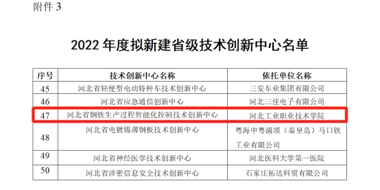 近日,河北省科技厅公布了2022年新建河北省技术创新中心名单。以我校为依托单位,联合包括世界顶尖IT企业浪潮集团,河北省知名企业石家庄新龙软件科技股份有限公司、唐山东华钢铁企业集团有限公司等企业,共同建设的“河北省钢铁生产过程智能化控制技术创新中心”顺利纳入建设计划。