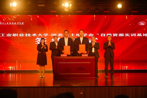 仪式上,学校副校长韩提文与河北省土地学会副理事长王军国签署了战略合作协议,河北省自然资源厅二级巡视员贡志刚与韩提文副校长共同为“自然资源实训基地”揭牌。“自然资源实训基地”是我校实现教学与实践、学校与企业、人才培养与市场需求无缝对接的重要举措。校会、校企将以资源共融共享的形式开展定制化培养,为学生在校期间提供企业培训学习,以地理信息+政务管理为重点培养内容,提高学生地理信息数据处理的基础能力,为自然资源专业领域培养高素质技术技能人才。同时联动优质企业拓展学生就业渠道,为学生专业实训、实习就业提供更好的平台,为企业提供人力和技能支撑,更好地推动区域经济发展的高素质技术技能人才在过程中发挥作用。
