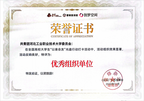 本次活动的开展,同学们认识到了节约粮食的重要性,同时在参与光盘行动的过程中,还了解到合理搭配食物、适量用餐对身体健康的重要性,有助于在生活中养成勤俭节约的良好习惯和健康的生活方式。本次活动有613名学生出色完成任务获得组委会颁发的活动证书,学校团委在活动中组织效果显著,被评委优秀组织单位。