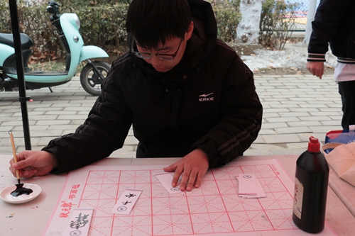 在活动启动仪式现场,大学生新媒体中心组成“校园艺术照服务队”为同学们义务拍摄“最美校园艺术照”;宣传部成员带同学们体验创意展板绘画,共绘志愿精神;E科技协会组成“电脑义诊服务队”为同学们维修保养电脑;书法协会的成员用毛笔字为同学们定制专属书签;魔方协会的成员用3000余块魔方拼成“学习雷锋好榜样”的主题魔方墙,吸引同学们驻足欣赏;现场还有同学们捐衣捐物、防诈宣传、交换书籍,相互传递着志愿与奉献的温暖。