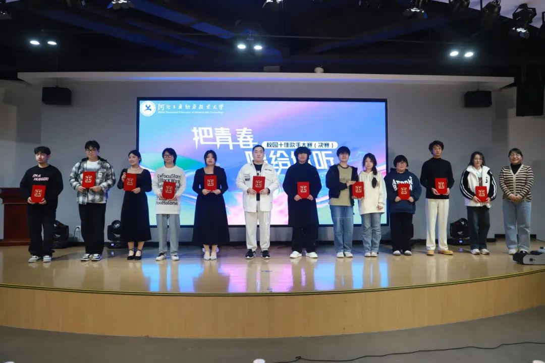 经过初赛、复赛的层层比拼,最终15位选手脱颖而出,站上决赛舞台。一首婉转悠扬的《有我》拉开比赛序幕,经典动人的歌曲《不为谁而作的歌》点燃了现场,一曲深情款款的吉他弹唱《南方姑娘》打动了观众的心,随之而来的《不将就》、《飞机场的10:30》、《这一生关于你的风景》引人共鸣,一首清甜可爱的《走,一起去看日出吧》引发全场欢呼、今年爆火的歌曲《壁上观》将现场的氛围推向高潮。一首首歌曲将一幅幅青春画卷徐徐展开,同学们沉浸式欣赏一场又一场精彩表演。最终韩宇昕、季佳慧、赵泊淘等10组选手荣获本届校园十佳歌手。