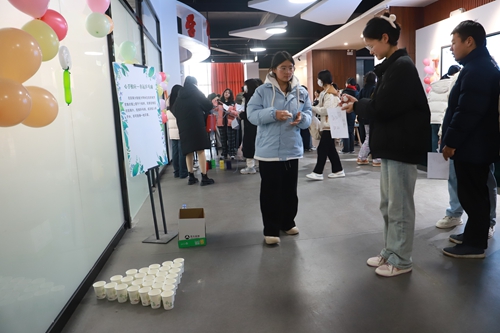 为了让同学们在潜移默化中重视心理健康,在轻松愉悦的氛围中缓解学业和生活压力,学会自我调节,12月5日下午,12.5“要爱我”心理健康日活动在“一站式”学生社区非遗工坊前展开,本次活动由学工部心理健康教育中心组织,心晴社承办。