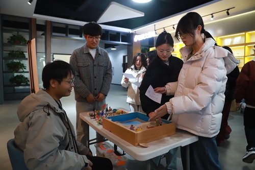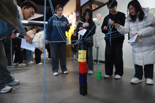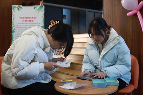 本次活动以“冬日暖阳,心梦逐光”为主题,包括四个独具特色的小游戏。在“心手相应——幸运乒乓球”活动中,需要同学们站在两米外将乒乓球投进纸杯,锻炼同学们的专注力与身体协调能力;“心志同筑——合力建塔”活动,需要成员们在拉紧绳子、操控塔钩的过程中相互配合、彼此磨合,让同学们学会倾听他人意见,共同为达成目标而努力,有效提升团队的凝聚力;“心灵奇旅——感悟一沙一世界”活动为同学们提供了一个表达内心深处情感与困惑的独特平台,通过沙盘创作,将无形的内心世界具象化;“倾听内心——珍爱卡体验”活动,借助48张心理投射卡片,结合手册中的图文解释,帮助同学们洞察自己的意识与潜意识,开启自我疗愈与成长之旅。同学们完成游戏后,还可以通过抽奖获得心晴社定制的精美书签、小巧钥匙扣和实用手机支架等特色文创产品,为活动增添了一份惊喜与乐趣。