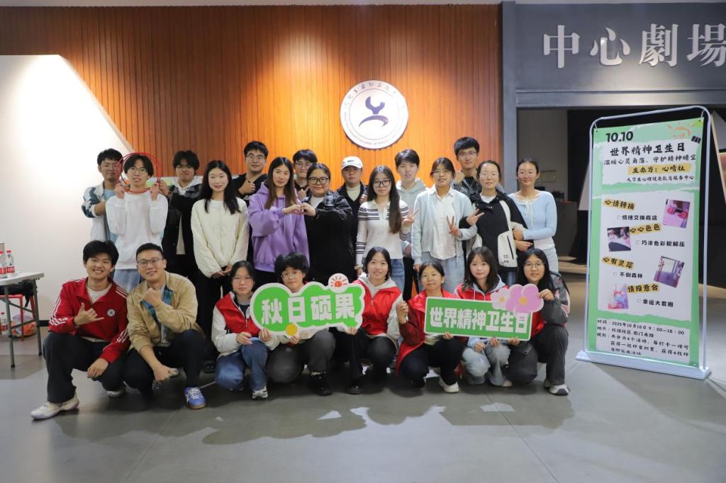 为响应国家卫生健康委办公厅关于世界精神卫生日宣传活动的号召,进一步加强校园心理健康教育工作,10月10日,我校心理健康教育服务中心、心晴社以“10·10世界精神卫生日”为契机,围绕“温暖心灵角落,守护精神晴空”主题,组织开展世界精神卫生日宣传体验活动,1500余名同学到场参与。