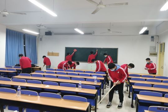 走出教室,换上志愿者服装,学生志愿者们出现在校园的各个角落进行大扫除,清理校园死角、违规小广告、操场白色垃圾、擦拭校园宣传栏、整理凌乱的自行车、分类整理校园书籍等,用实际行动共同营造温馨整洁的校园环境。