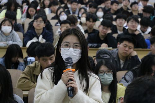 本次讲座中,徐老师首先从公众演讲与日常聊天内容入手,拉进了与同学们之间的语言交流。随后,徐老师以声音传播速度、语气音调强弱为例,用不同颜色做比喻,形象讲述了声音的“色彩”,让同学们体会声音的魅力。最后徐老师向同学们传授朗诵技巧,例如,为突出强调可用重读,遇标点可停连,表达感情的起伏可用节奏,使同学们受益匪浅。