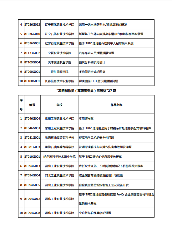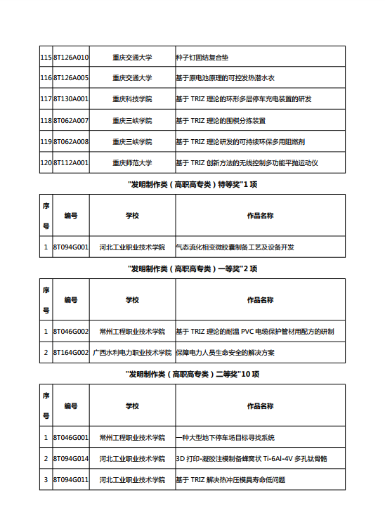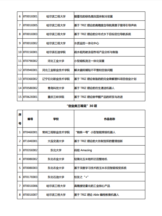 第八届中国TRIZ杯大学生创新方法大赛获奖名单