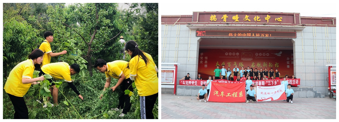 建党百年之际,学校深入学习贯彻习近平总书记在庆祝中国共产党成立100周年大会上的重要讲话精神,我校11支社会实践队伍的上百名实践队员分别奔赴张家口、承德、保定、邯郸等地市的12个贫困县和村庄开展2021年暑期社会实践活动,涉及党史学习教育、理论宣讲、国情观察、乡村振兴四个类别的实践团,深入村庄农户、扎进田间地头,用实际行动学党史、研国情、做实事,展现新时代青年学生的爱党情、报国志。