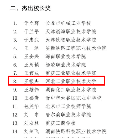 近日,中华职业教育社公布了全国第七届黄炎培职业教育奖获奖名单。我校党委书记王振杰荣获“杰出校长奖”。